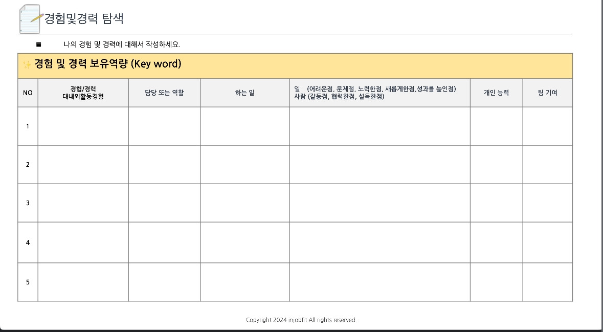 자기 소개서와 면접준비 역량 포트폴리오, 성장스토리에 활용할 수 있습니다