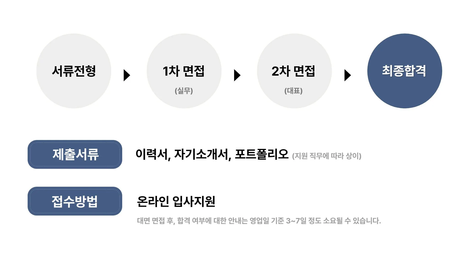 • 제출 서류 : 이력서(필수), 자기소개서 및 포트폴리오(제출 시, 가산점)