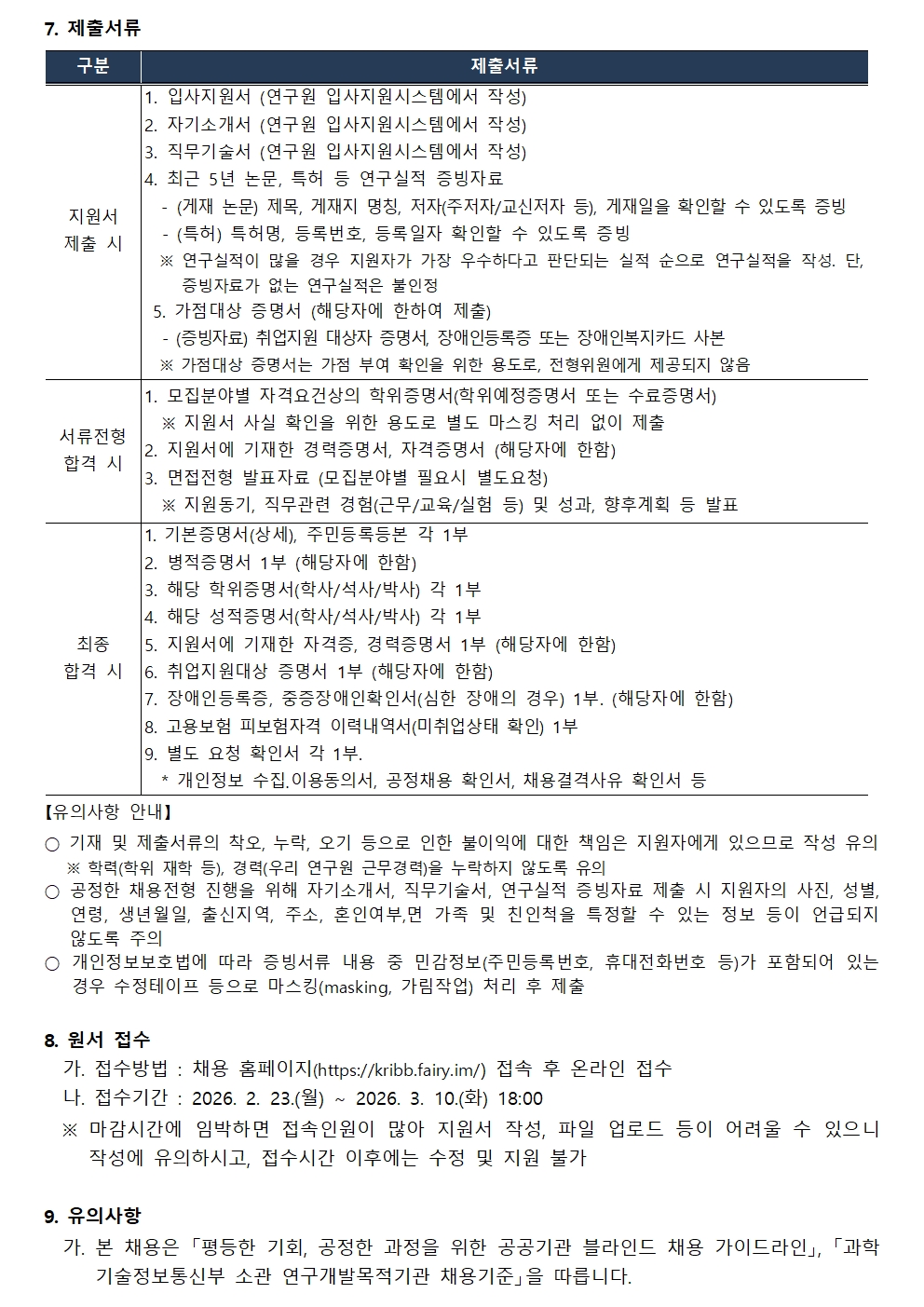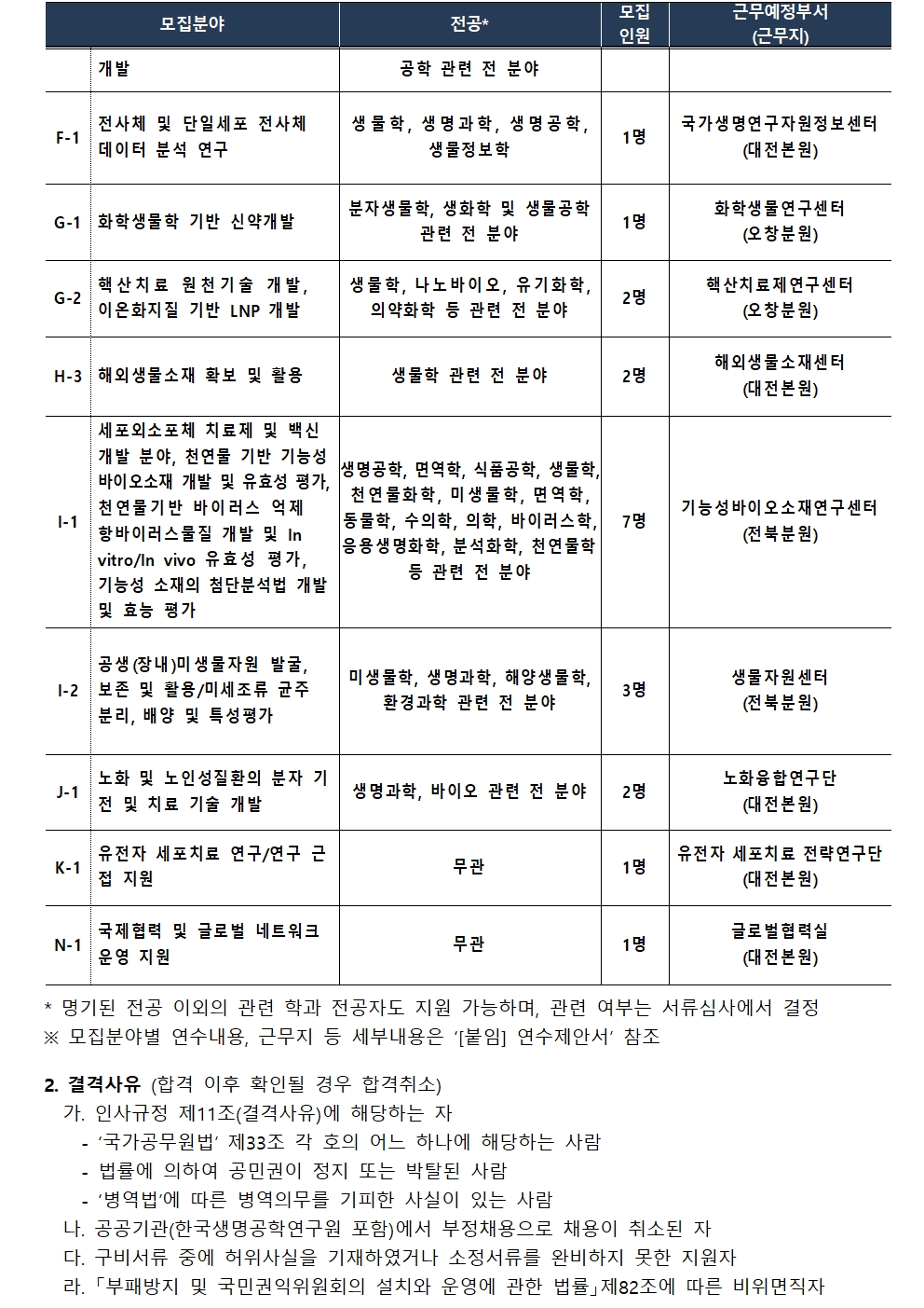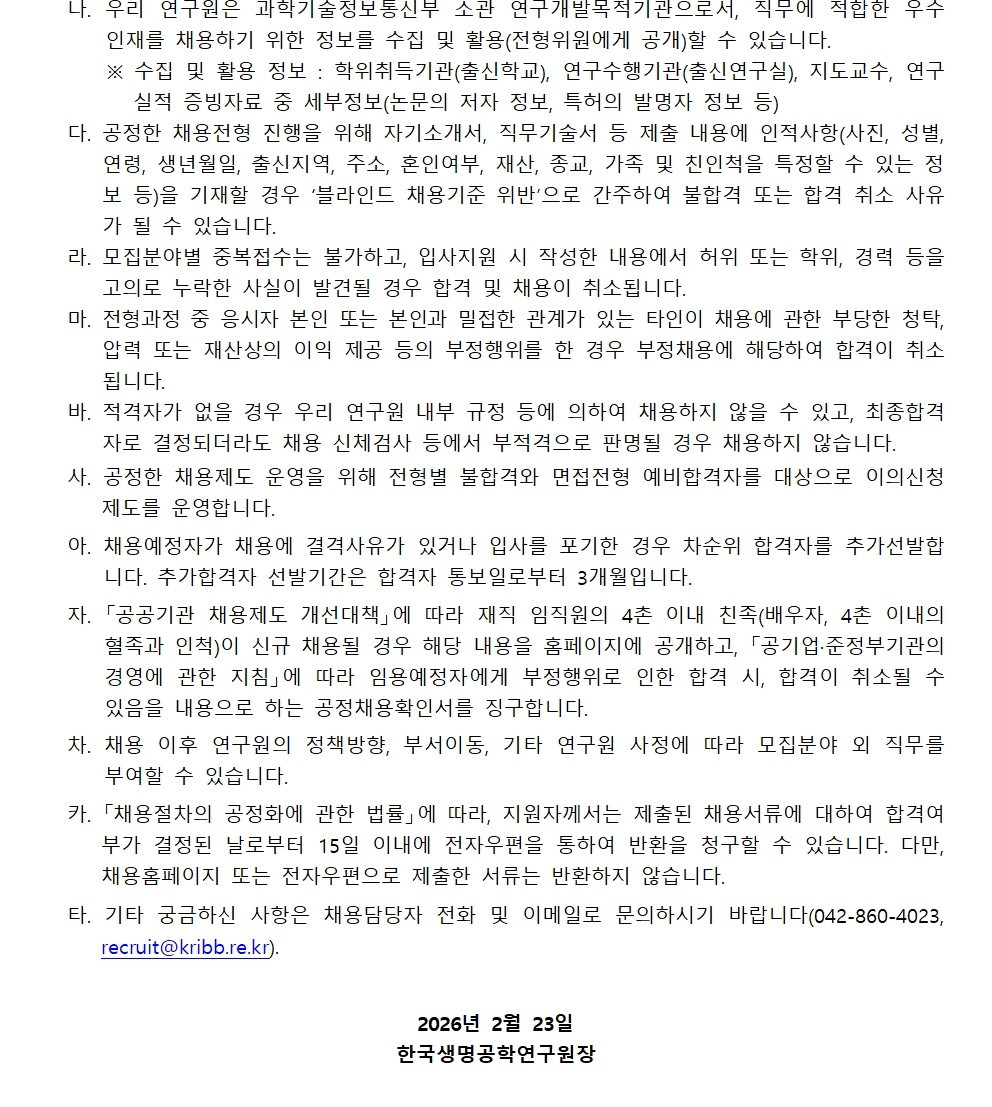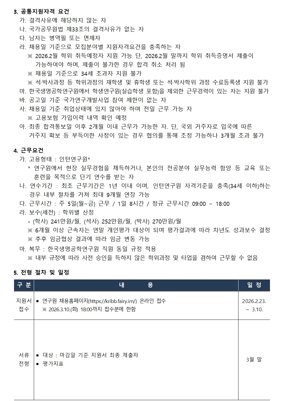 한국생명공학연구원|2026-1차 인턴연구원 채용